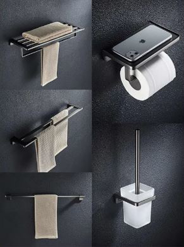 Set sadrži 3 različita držača za peškire, držač toalet papira i wc četku